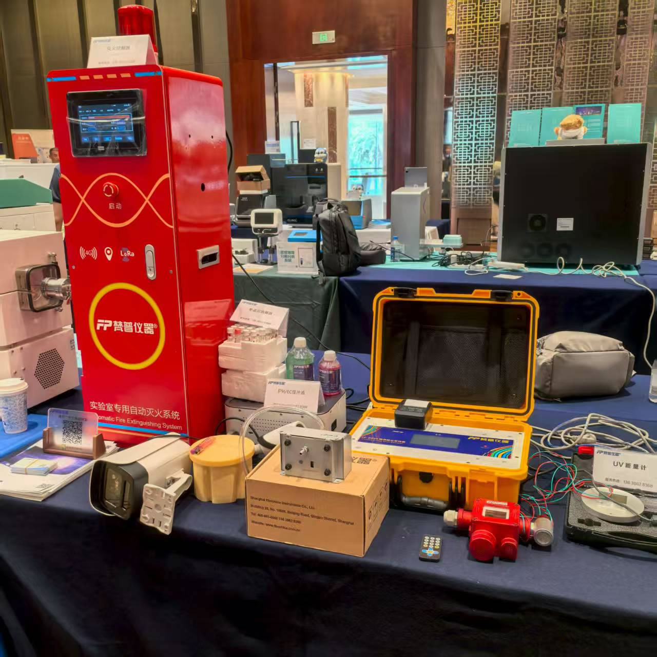 上海梵普仪器有限公司现场为大家展示自产产品:实验室自动灭火系统(自动灭火设备、火焰探测器 、中控室通知终端)、在线气体检测仪(氧气检测仪、硫化氢气体检测仪、氨气检测仪、一氧化碳气体检测仪、可燃气体检测仪、甲烷气体检测仪、氢气检测仪、有机挥发物(TVOC)检测仪、氯气检测仪)、水质检测仪(pH、ORP、电导率、盐度、溶解氧、浊度、叶绿素、蓝绿藻、水中油、温度、GPS、4G、氨氮、总磷、总氮,色度、透明度、水中油、CDOM、悬浮物测定仪,各种重金属、无机盐、有机化合物等几百种水质测定仪等)、粉尘采样器(单泵/双泵粉尘采样器)、远程粒子计数器(0.3/0.5/1/2.5/5/10μm 6通道)、色母机、UV能量计、安全光幕等